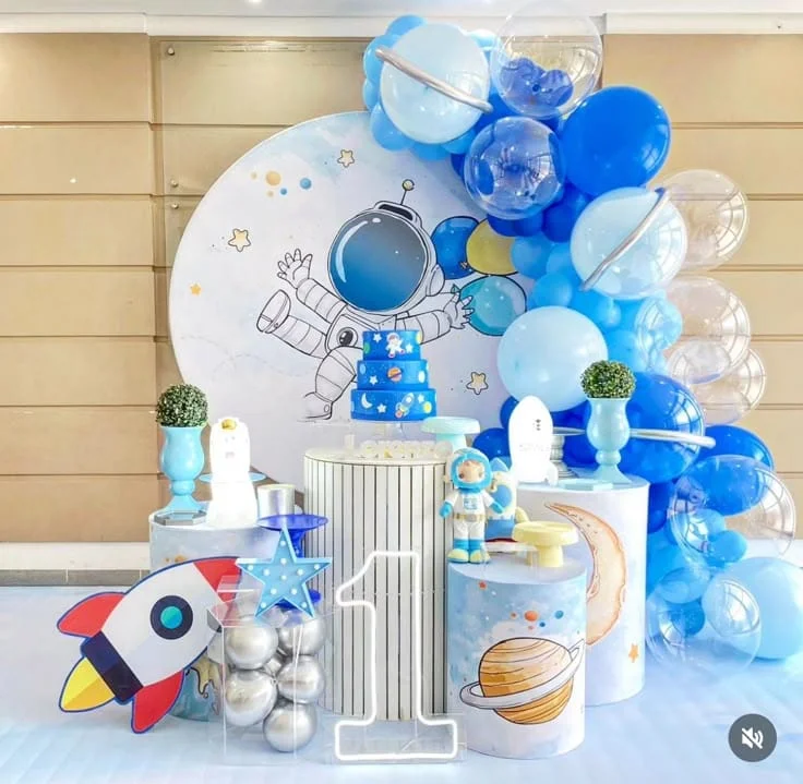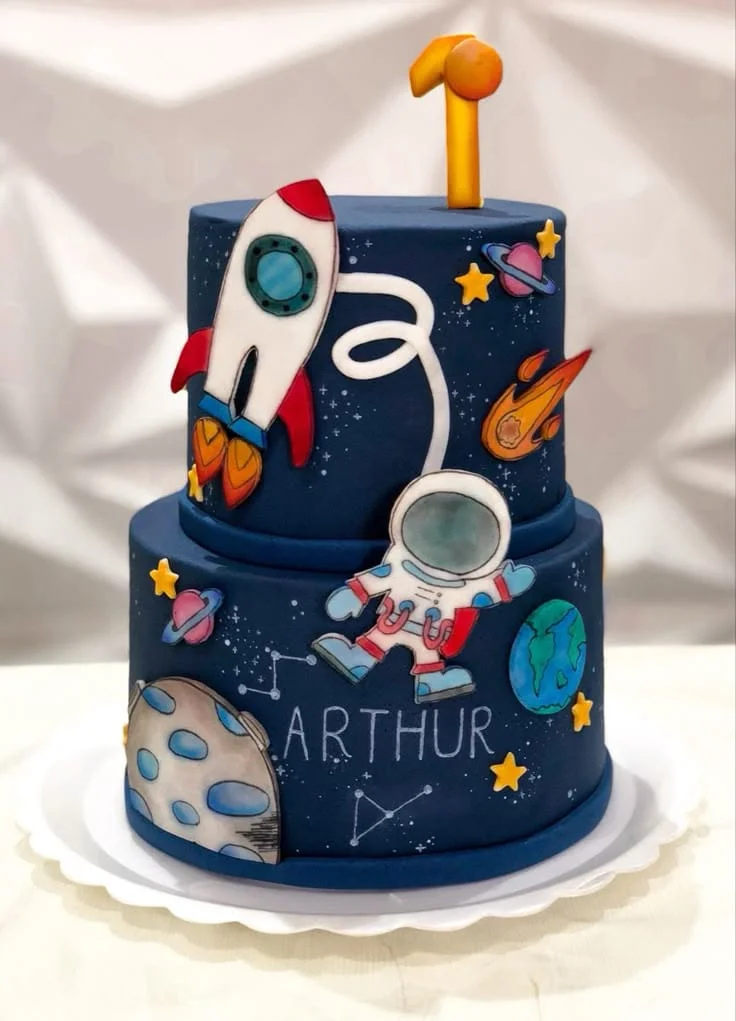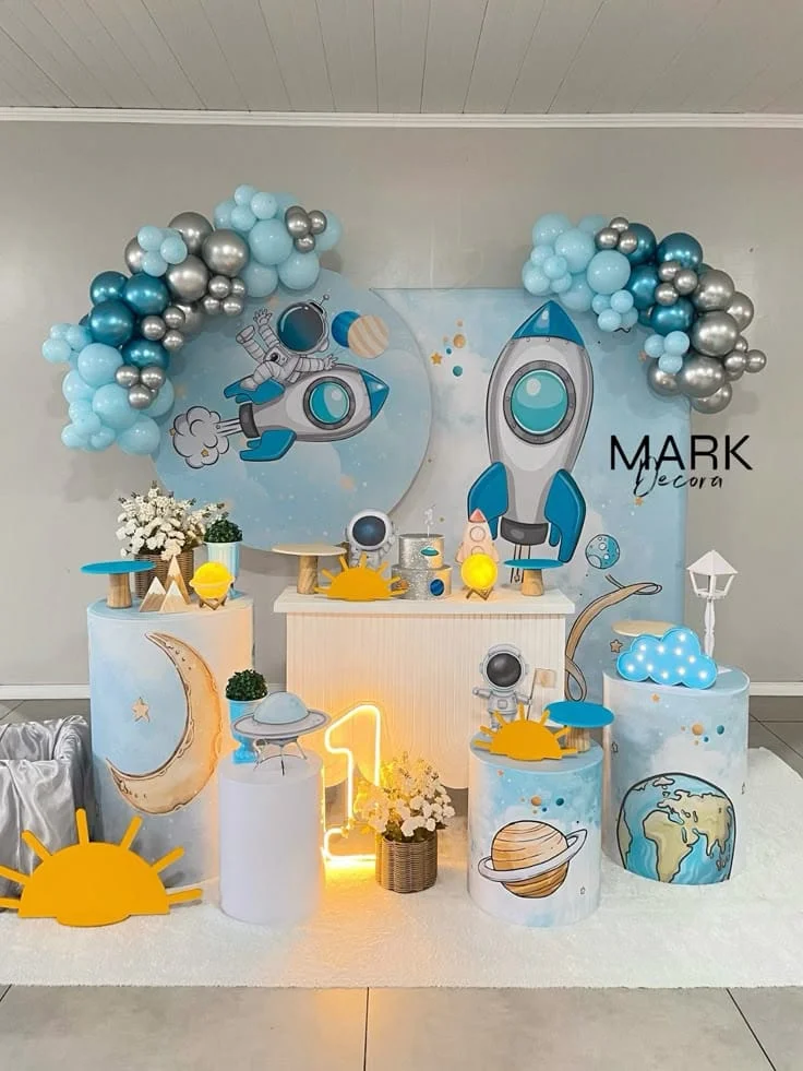 Para os pequenos exploradores do espaço, esse tema traz planetas, estrelas e foguetes, criando uma verdadeira viagem intergaláctica cheia de cores e brilho.