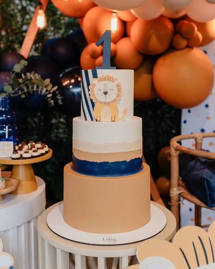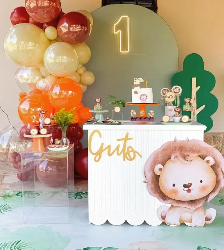 O rei da selva vai brilhar na festa! Uma decoração com tons terrosos, folhas, balões e um leãozinho simpático vai garantir um cenário cheio de fofura e diversão.