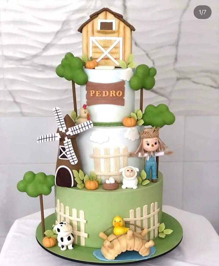 Um clássico que nunca sai de moda! Animais do campo, cercas, feno e tratores deixam o ambiente aconchegante e alegre para a festa do seu bebê.