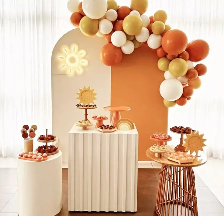 Esse tema traz uma atmosfera alegre e delicada, perfeita para celebrar a chegada do bebê com muito brilho e cor. A decoração pode incluir tons de amarelo e branco, nuvens fofas e elementos que remetam ao céu ensolarado. Balões, bandeirinhas e docinhos temáticos deixam a festa ainda mais encantadora. Esse tema simboliza luz, felicidade e o novo ciclo que se inicia com a chegada da bebê!