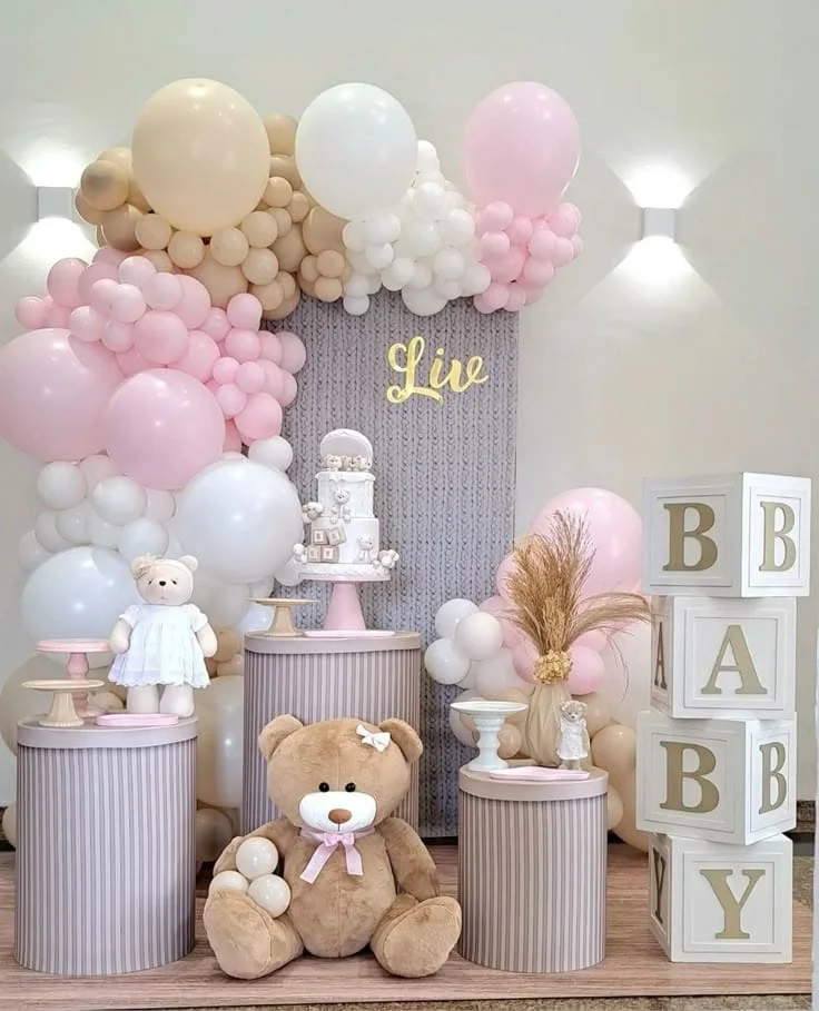 É uma escolha fofa e aconchegante para celebrar a chegada do bebê. A decoração pode trazer tons suaves como bege, verde, lilás ou rosa pastel, combinados com pelúcias, laços e detalhes delicados. Ursinhos espalhados pela festa, seja nos enfeites de mesa, bolo ou lembrancinhas, deixam o ambiente encantador e cheio de carinho, tornando esse momento ainda mais especial!