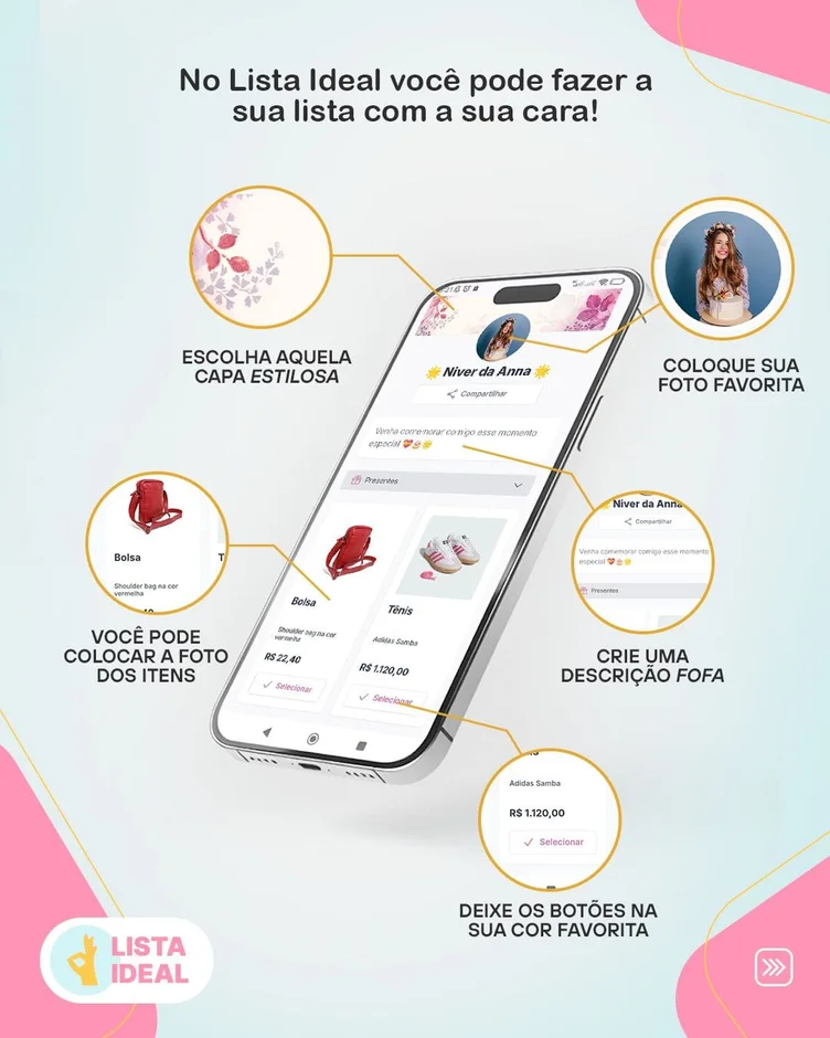 Você pode deixar a sua lista com a sua cara! No Lista Ideal, é possível: