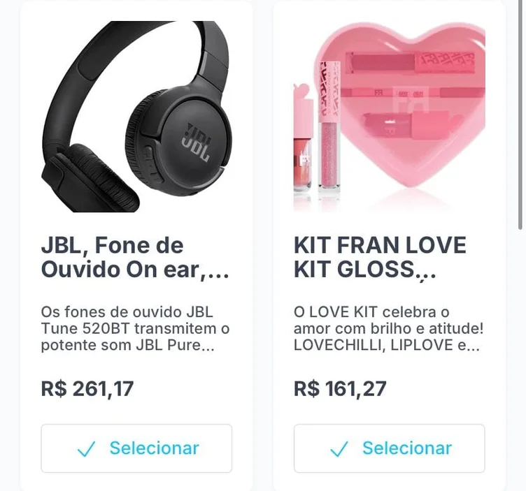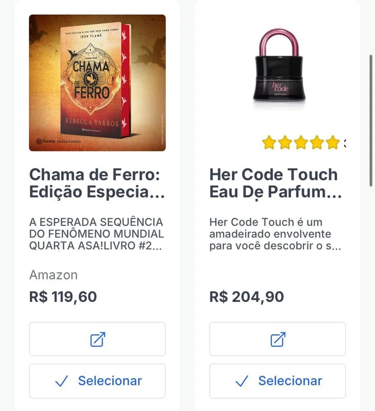 Você pode adicionar qualquer link de produto da internet. Quando o convidado clicar, ele será redirecionado diretamente para o site da loja para realizar a compra.